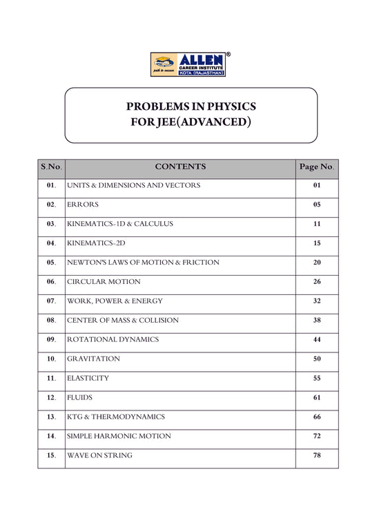"A Problem Book in Physics" has been meticulously designed to serve as a reliable companion for JEE Advanced Examination aspirants. This book brings together a comprehensive collection of problems, classified...